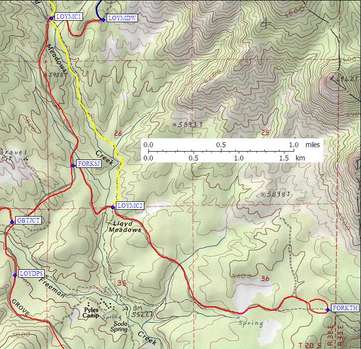 Lloyd Meadow trailhead to Jerkey Meadow (GPS route LLOYD MEADOW),