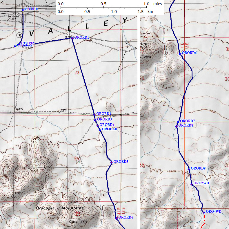 Orocopia Driving Details - right map section is southern continuation of left section: (see overview map above)