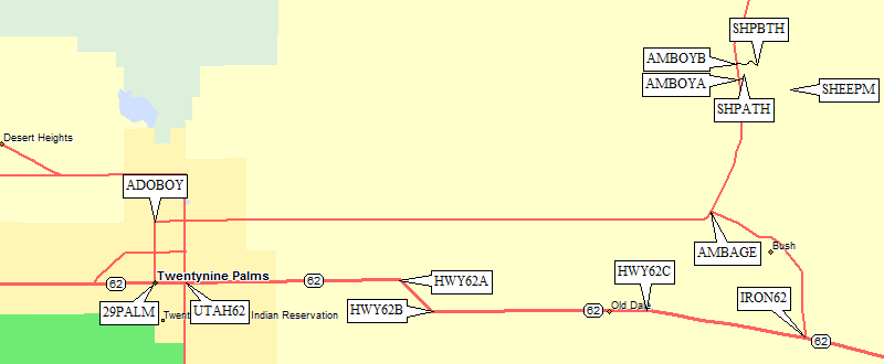 of Twentynine Palms (waypoint 29PALM) and 12 miles west of where