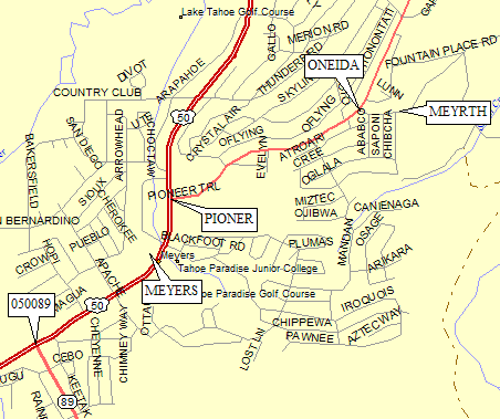 From the Chevron station in Meyers (waypoint MEYERS), go 0.3 miles