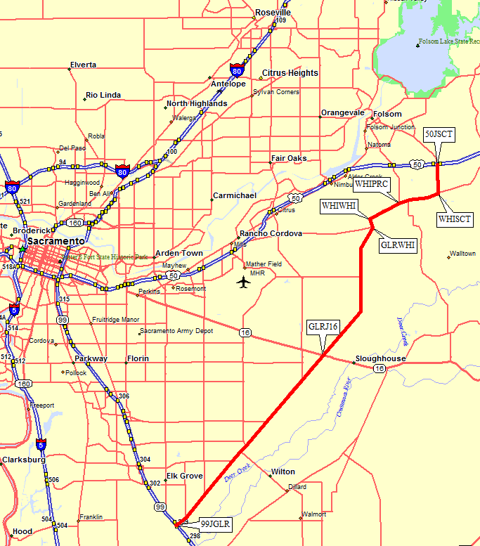 waypoints from Hwy 99 to Hwy 50, by way of Grant Line Road