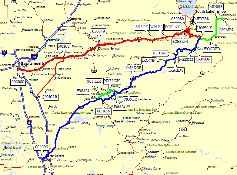 waypoints from I-5 to Hwy 395, by way of Hwy 88 through Jackson and over Carson Pass