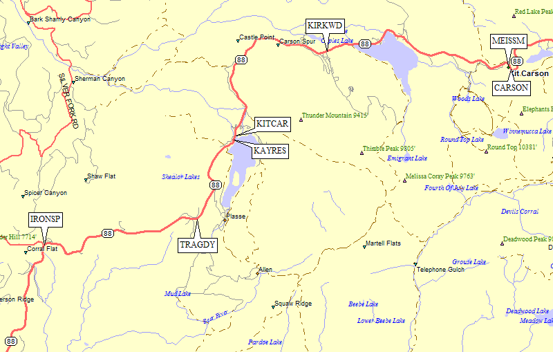 Here is the portion of Hwy 88 from Iron Mtn Sno Park, past Silver Lake, and over Carson Pass: