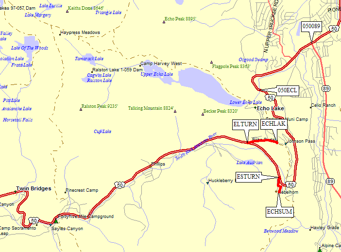 (main GPS route ECHO SUMMIT - 50, side route WRIGHTS LK RD)