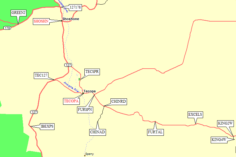 Just west of Tecopa, it intersects Hwy 127 (waypoint TEC127).