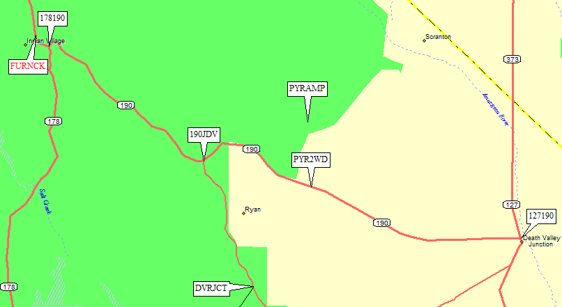drops 12 miles to Death Valley Junction (waypoint 127190) where Hwy 190 T's