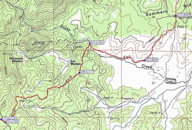 go through a gate just before reaching Snake Creek (waypoint SNACRK)