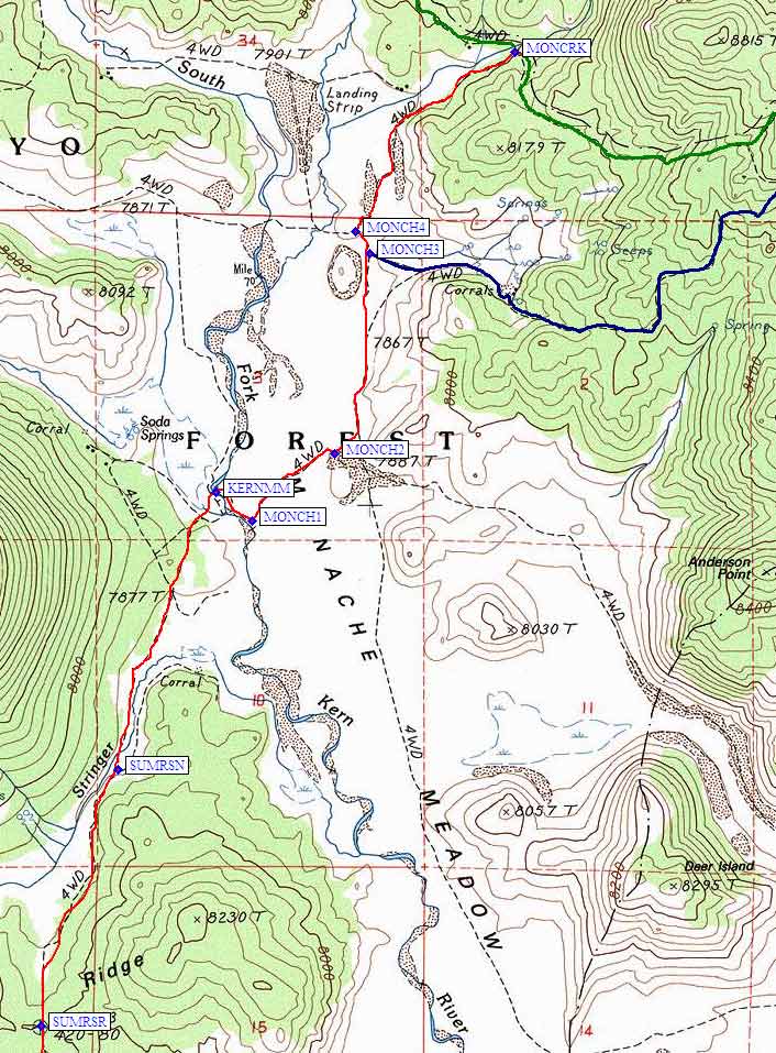 but the Monache Meadows Kern River crossing (waypoint KERNMM) is exactly