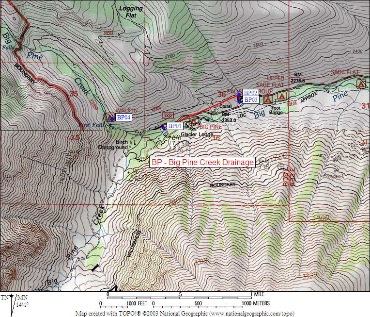 Detail Map of waypoint BP01 in Big Pine Creek Drainage: