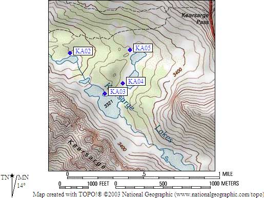 Detail Map of waypoint KA02XX in Kearsarge Area Eastern Rae Lakes Loop: