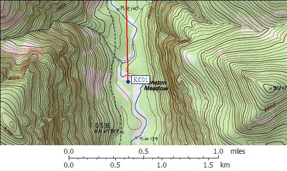 1. KC01 is 2 large boxes, at about 6500 feet, in the GPS route KERN CANYON.