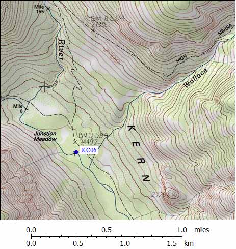 Detail Map of waypoint KC06 in Kern Canyon: