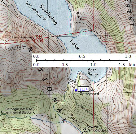 (lat,lon) = (37.9639600, -119.2723300) in decimal degrees, NAD83. (zone,east,north) = (11S, 300467.0, 4204053.0) in decimal meters, NAD27.