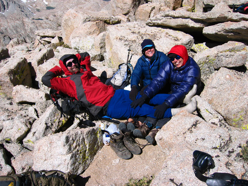 By late afternoon I was napping in the sun behind a windbreak at Sky Blue Lake. The wind shifted continually after that first evening, and it wasn't really warm again until the last day.