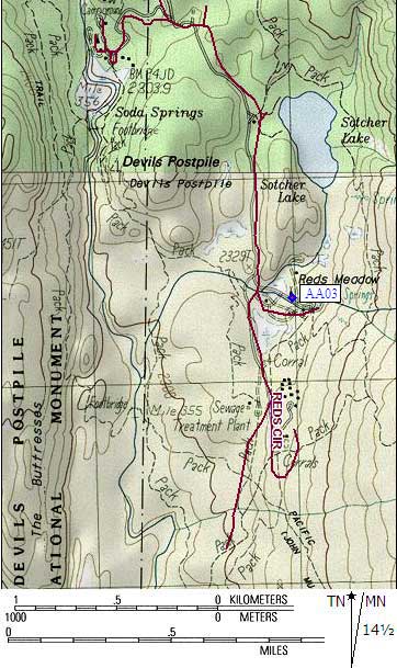 (lat,lon) = (37.6193200, -119.0745500) in decimal degrees, NAD83. (zone,east,north) = (11N, 316994.0, 4165404.0) in decimal meters, NAD27.