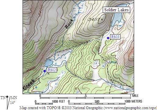 USGS maps. Upper Soldier Lake is half a mile due south of The Major