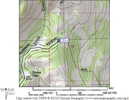 the parking lot) at the Snow Flat trailhead, north of Hwy 120