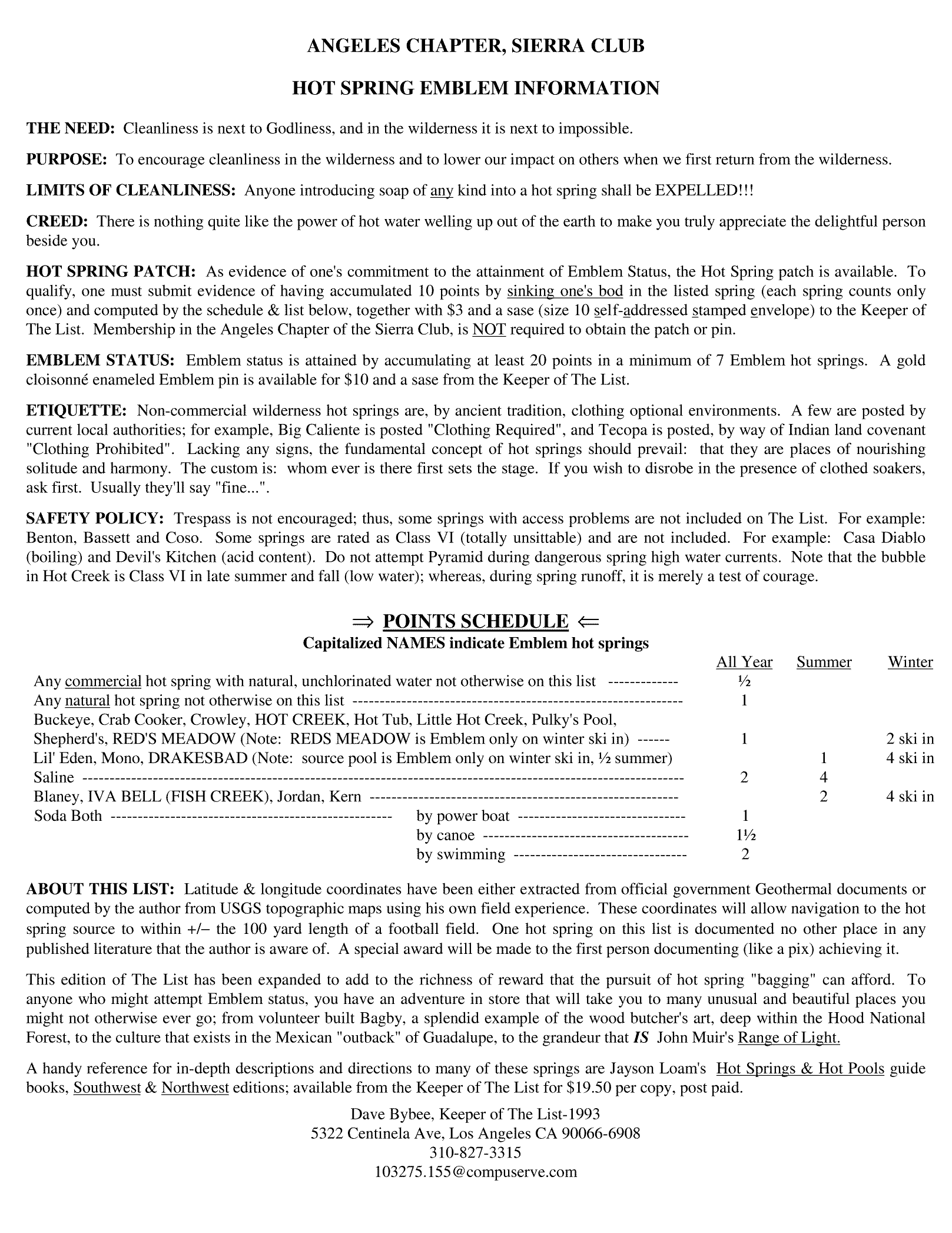 The Angeles Chapter lists their favorite Sierra hot springs and a way to count which ones you've seen...