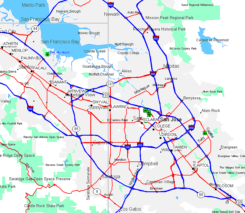 | San Antonio | Showers Dr & San Antonio Rd, Mountain View SE of San Antonio (which connects to Hwy 101), at Central Expressway. | SANANT waypoint | |
