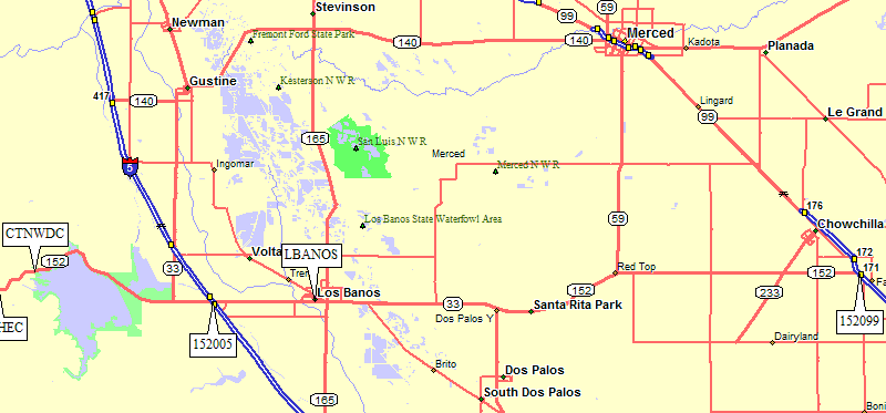 north from Hwy 152 on 6th Street in Los Banos (at waypoint LBANOS).