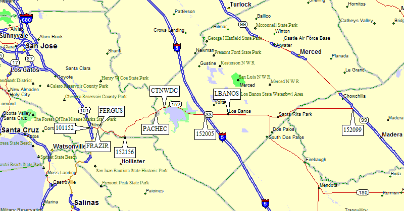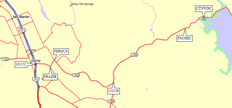 Overview of Hwy 152 from Hwy 101 to Hwy 99: