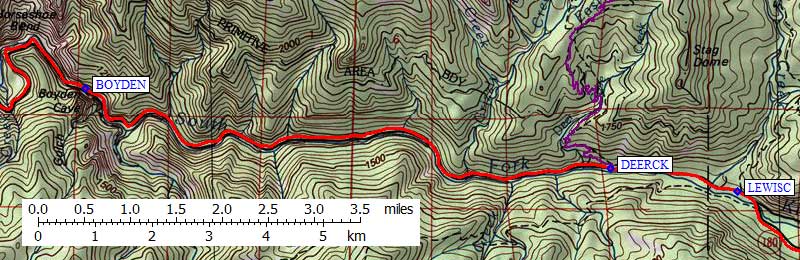 (waypoint DEERCK) and Lewis Creek (waypoint LEWISC).