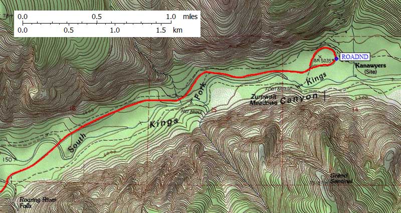 and eventually you reach the Kings River at about 3000'. This road