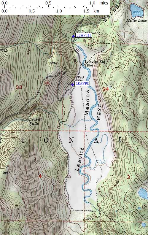 Leavitt Meadow is the flat spot at 7000', above and west of the Marine base but below and east of the steep grades (marked 12%) so commonly associated with Sonora Pass.