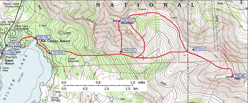 Kit Carson Resort (waypoint KITCAR) at the north end of Silver Lake, for Thunder and Thimble: