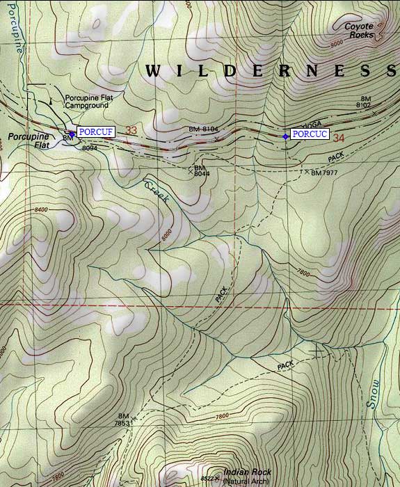 The Porcupine Creek trailhead (waypoint PORCUC) is