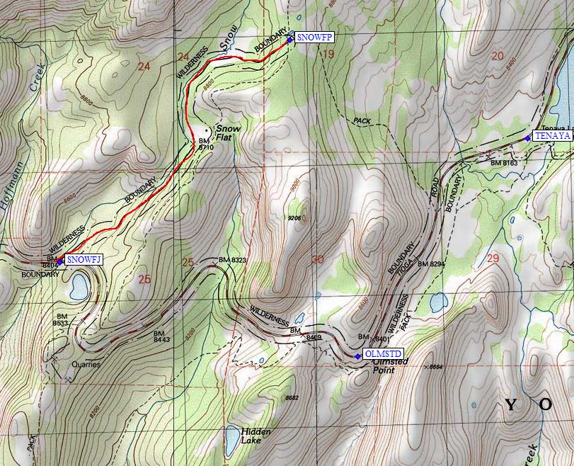 Snow Flat, Olmsted Point, May Lake, and Tenaya Lake (see also Hwy 120 Overview Map)