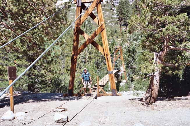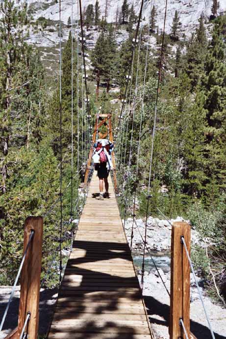 Wednesday August 25th. We all hike together to the junction of the 60 Lakes Basin trail with the John Muir Trail (JMT). Here we part company with Gerhard, Asher and Jack heading back to Onion Valley and R.J. heading out via Bubbs Creek. Joe and I turn onto the JMT and start heading north for the final 30 miles of our journey. Since we are well acclimated and our packs are much lighter, we make good time as we pass through this spectacular area even with plenty of stops for picture taking. By noon we have reached the suspension bridge (very cool) over Woods Creek and are starting to talk about getting out in 2 days instead of 3 as originally planned. As we chug up the trail towards higher terrain and Pinchot Pass, we talk more and more about seeing family and friends and enjoying a good meal (and beer..mmmmm). - I know we will be heading out on Thursday.