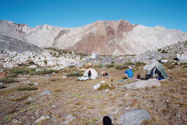 We make camp on one of the last lakes before Pinchot Pass at an elevation of 11,300 ft. It is a cold and windy camp and the wind blowing through Mt. Wynne sounds like a freight train.